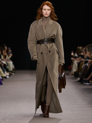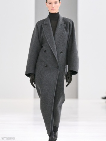 一袭混碳灰色大衣在灯光下流转着微妙的光泽。