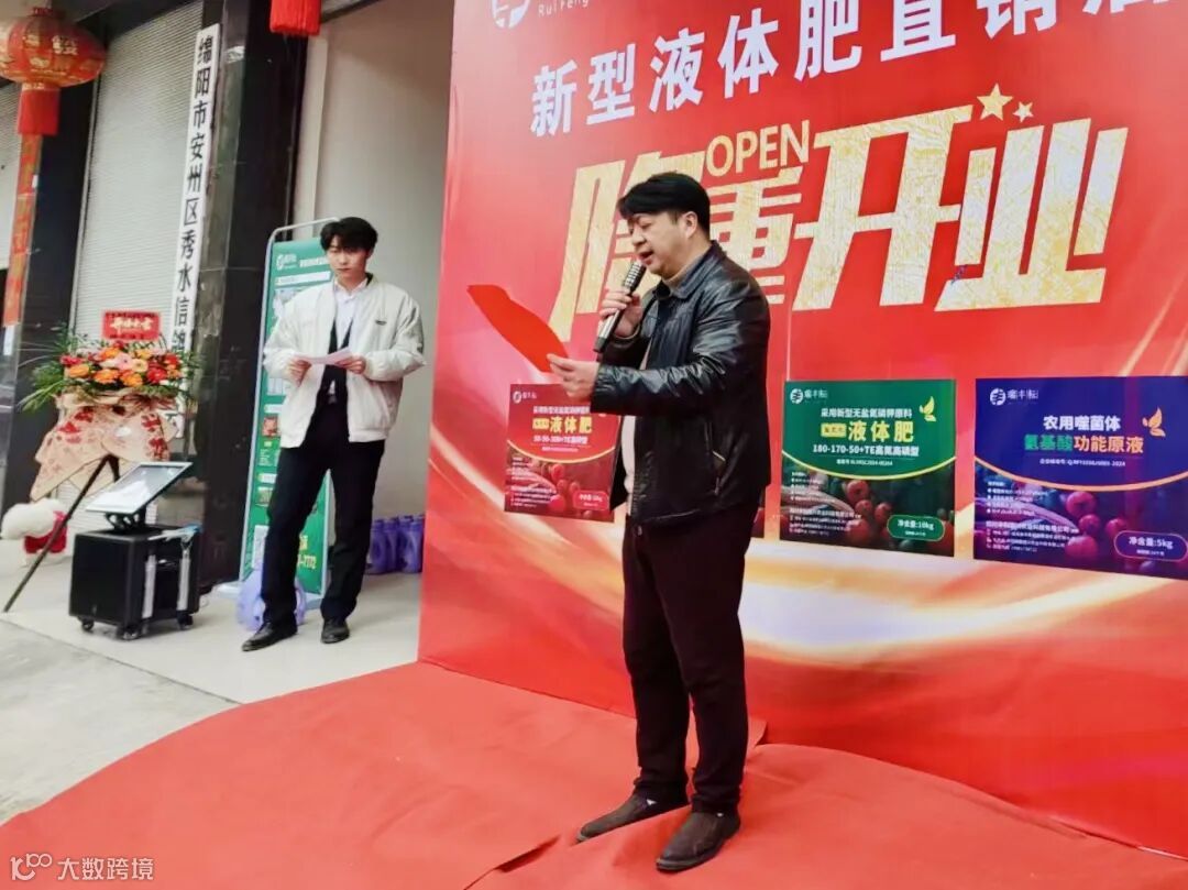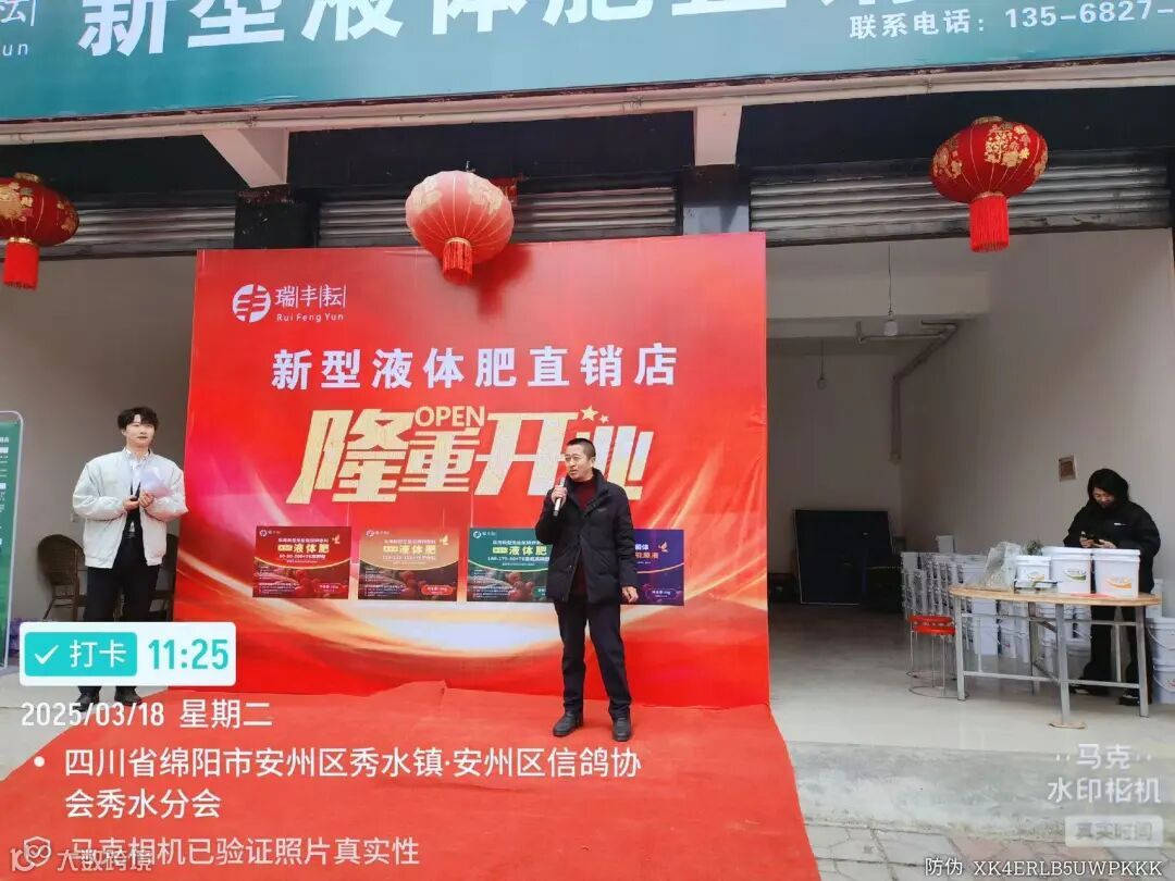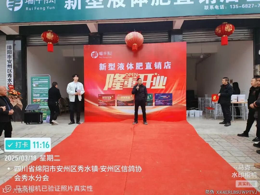 开业仪式上,丰耘国兴总经理魏敏发表了热情洋溢的致辞。他表示,安州区农业资源丰富,公司对在此设立直销店充满信心。丰耘国兴一直致力于农业科技创新,核心产品“瑞丰耘”盐无忧新型液体肥,是公司多年研发成果。该产品采用独家无盐氮磷钾体系,不含易导致土壤盐分积累的离子,能有效避免土壤盐碱化和盐酸化。魏敏强调,公司将秉持“瑞泽三农·丰耘大地”的宗旨,持续优化产品与服务,为农户提供更优质高效的农业解决方案,助力当地农业发展。