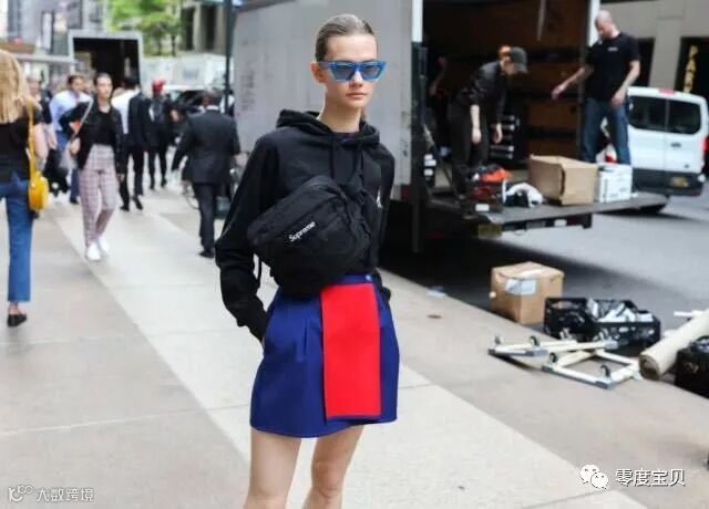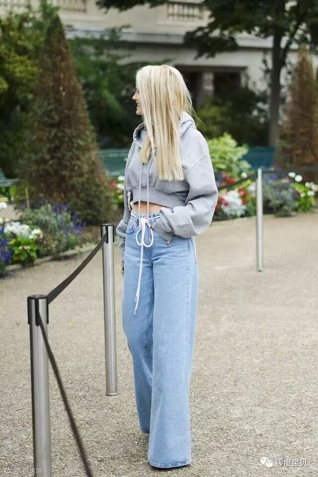 卫衣+牛仔裤是一个更为普遍的搭配,只要注意好比例和款型,基本上怎么穿都不会错。而今年流行的高腰牛仔裤拿来搭短款卫衣就很酷了。