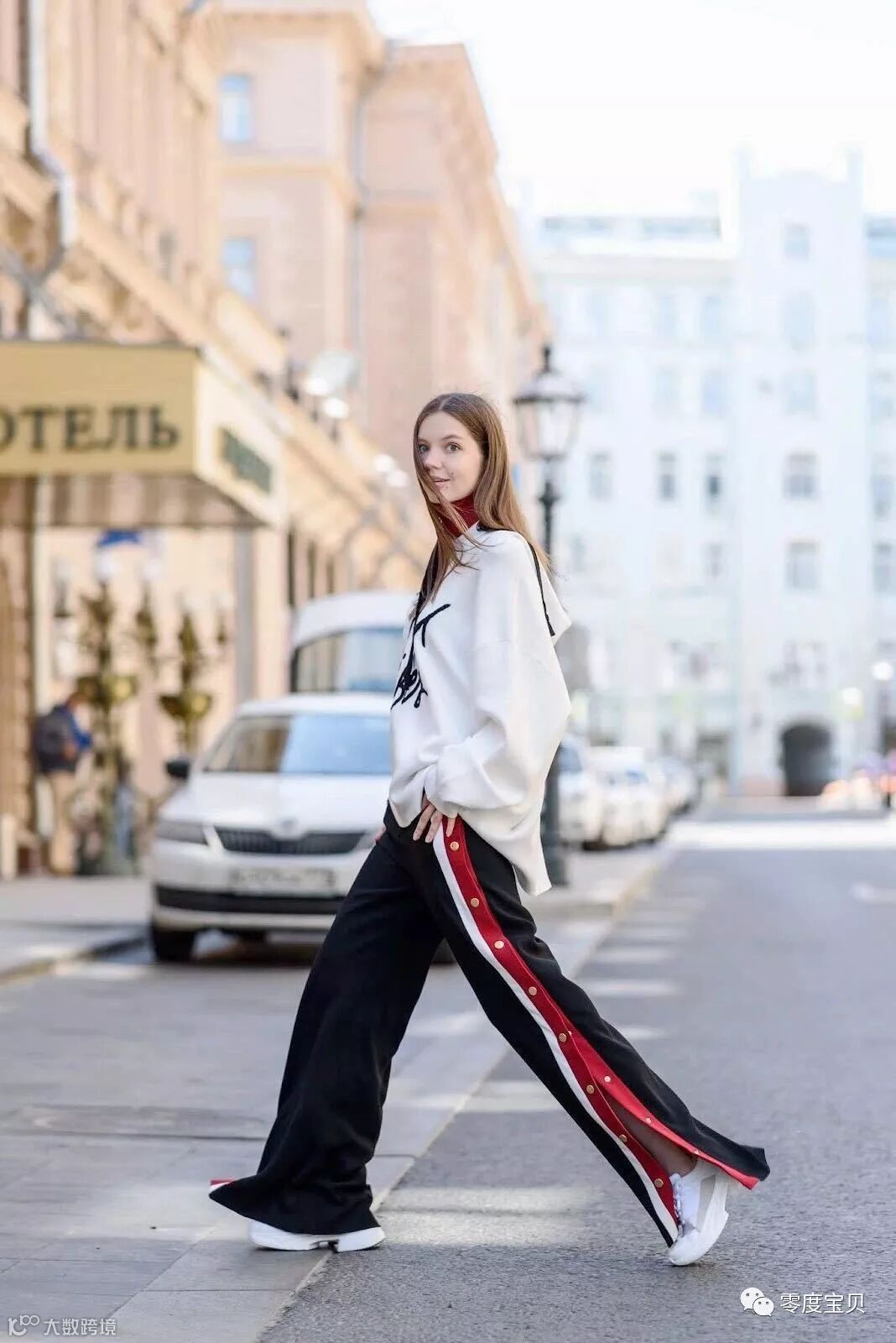 两款偏运动风的单品搭配起来却有一种时髦的效果,较宽松的裤腿加上两侧的趁边,让你的腿型看起来又长又直。无论是长款还是短款都可以搭配哦