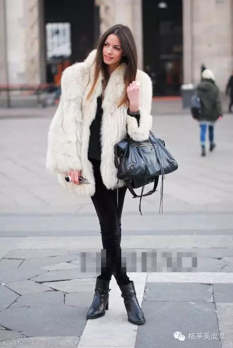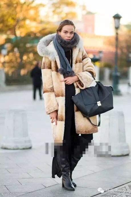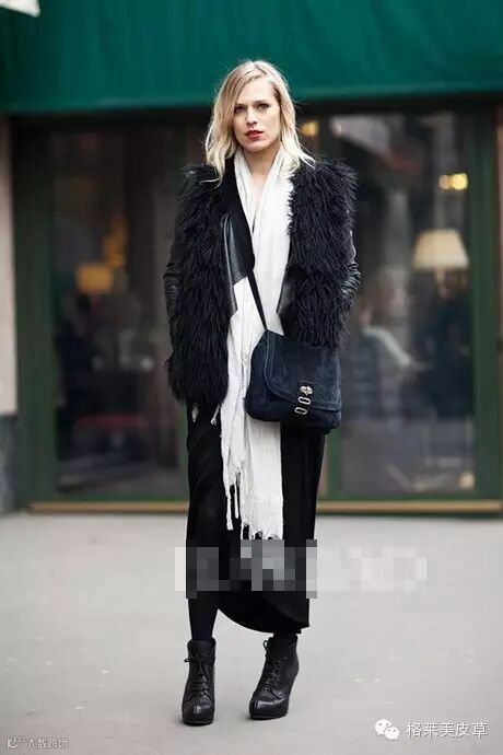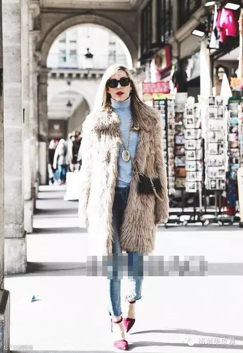 意更浓,黑白款搭配窄腿裤就能轻松扮酷,彩色皮草外套让你成为街头焦点;带皮草装饰的帽衫好穿又百搭。下面来看看一些欧美型人们的搭配吧。