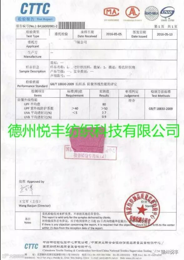 凉感纱UPF紫外线防护系数大于50,
