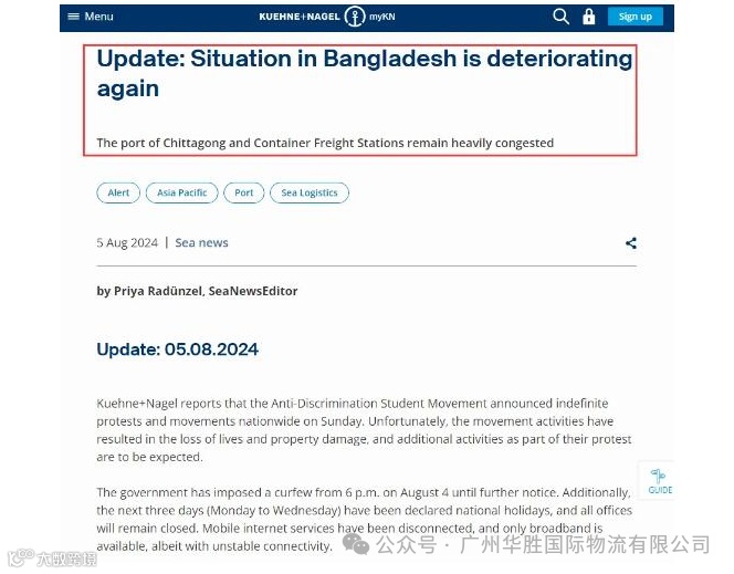 8月5日,德迅官网发布了预警:孟加拉国局势再次恶化,吉大港仍然严重拥堵