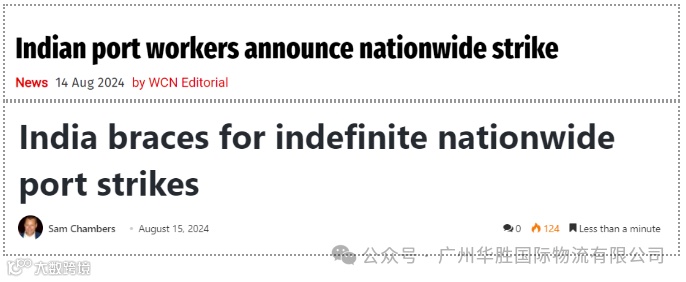 这可能会导致届时印度全国的港口运营中断,物流延误。