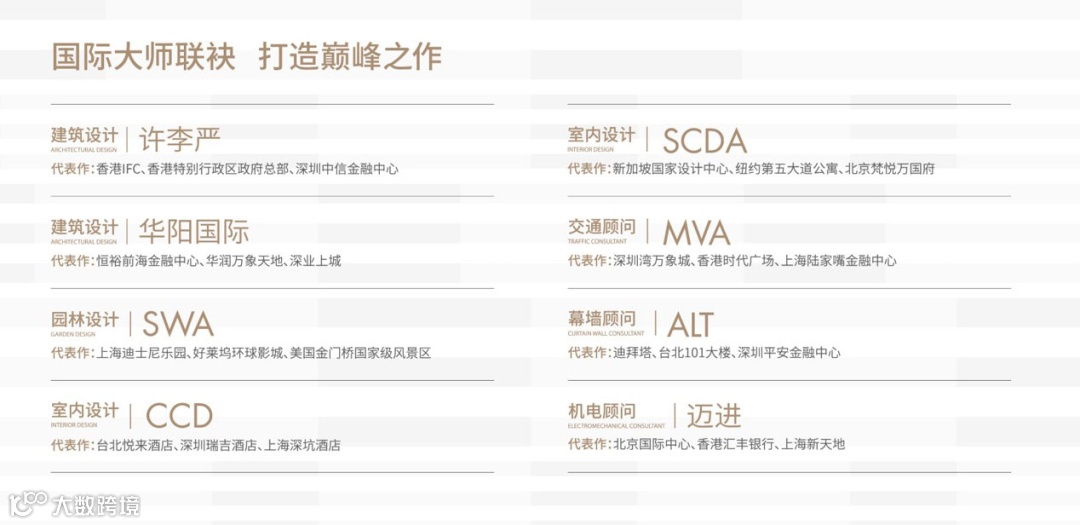 不管是设计高度、硬件配置上,还是设计团队,恒裕深圳湾都做了进一步提升,聘请包括许李严、SWA、CCD等在内的世界级大师设计团队,从建筑、园林、室内、交通等方面多量考究。
