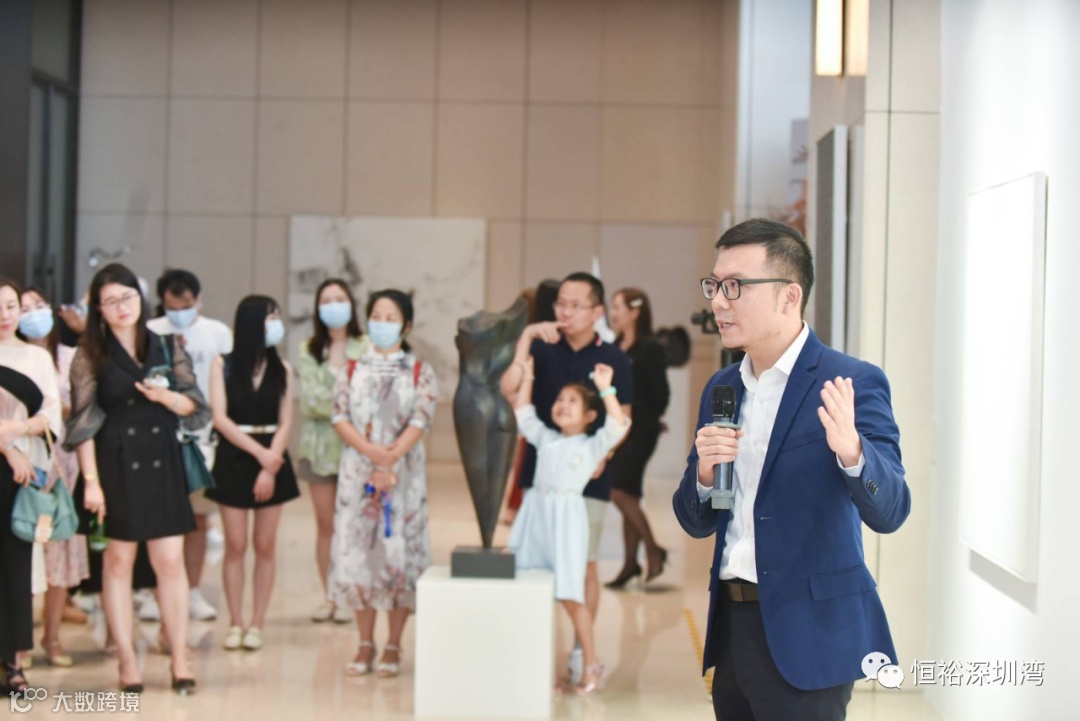 恒裕集团营销总监陈京洲发表精彩致辞,恒裕集团作为中国美好人居生活的锻造者,也致力于将中国文化自信推向世界,将艺术进行生活化表达,让工作、生活在恒裕写字楼、豪宅中的业主能处处感受到中国文化自信与荣光。