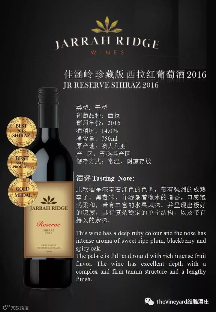 佳涵岭酒庄坐落在天鹅谷——西澳最古老的葡萄酒生产区,已经有超过180年的葡萄酒酿造史。正如贾拉木(澳洲独有的桉木)对西澳来说是特别的,在这片美丽的土地上我们已经持续酿造出来许多获奖的独特酒款。今年有幸荣获"西拉王",很感谢澳州葡萄酒界的肯定与客户一如继往的支持!