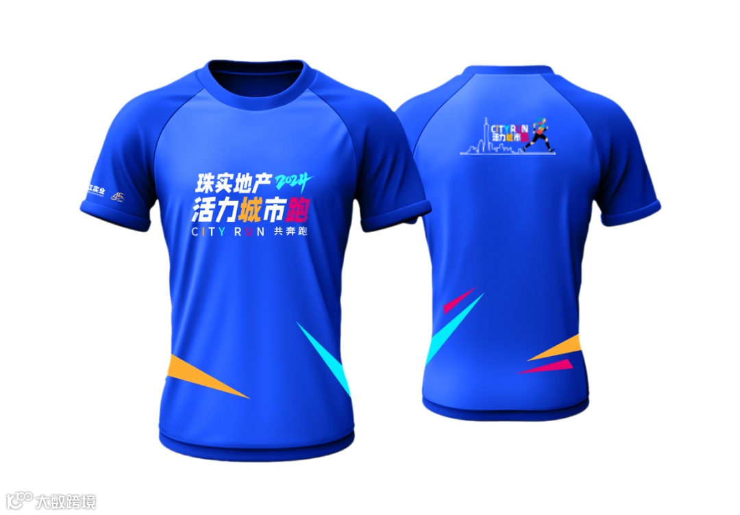 跑者服装以科技蓝为主色调,搭配热情的柑橘色、玫瑰红、亮蓝色等,与城市兼收并蓄、美美与共的精神融会贯通,亦诠释了活力新潮的跑步流行文化。设计上以珠实地产活力城市跑的LOGO作为主元素,突出本次活动的主题。