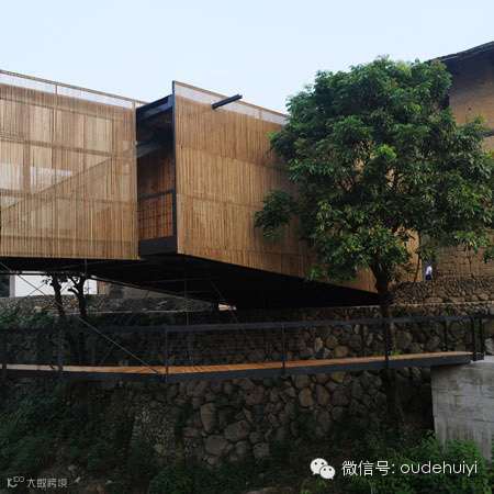 项目位于中国福建偏远的山村,是一个跨越一条小溪,连接两个古堡的桥型建筑。这个建筑表面上看起来是一座桥和一个学校,却也是一个精神活动中心。它包含了几个不同的功能:桥跨过小溪,连接两个古堡;学校也象征性地连接着过去、现在和未来,还有孩子们的游乐场,以及村民的剧场——建筑有两个教室,也可作村民的剧场,为村民服务的舞台。教室下方悬挂一条窄窄的桥,作为通过小溪的第二条道路。