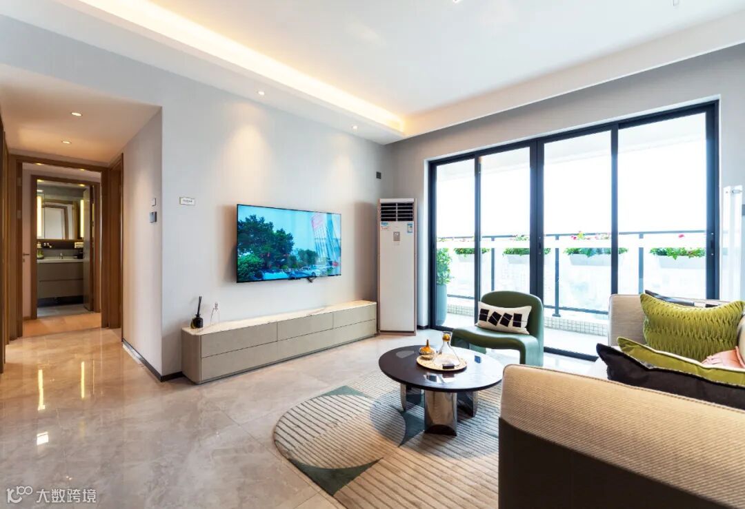 入户玄关设计,极大方便了主人出入时包包、钥匙、雨伞等随身物品归置,也让进入客厅时有个缓冲、过度空间,增添了归家仪式感。餐、客、阳台一体,空间通透,灵活承载多样生活,聚会休闲随心享。
