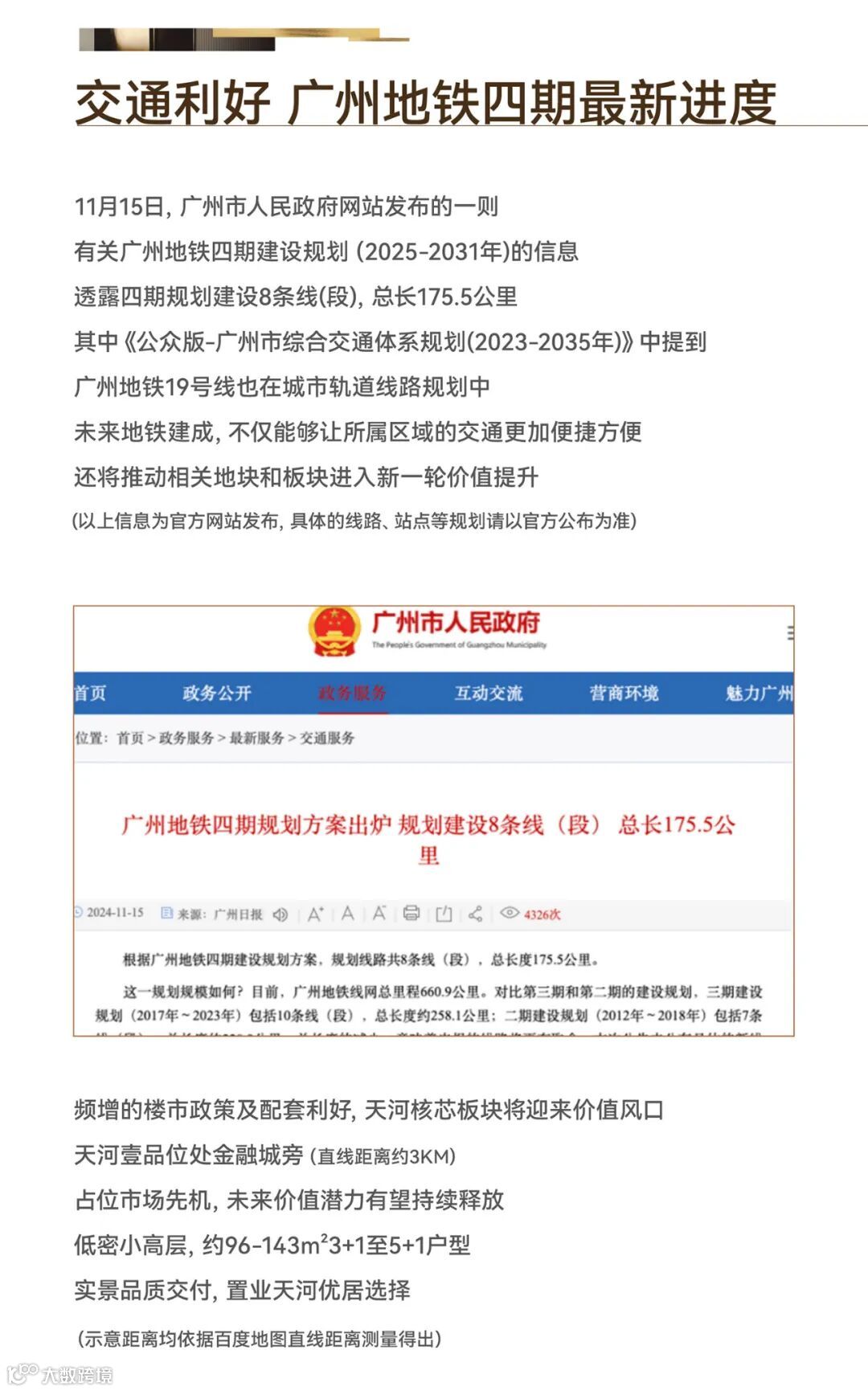 免责声明:1、本宣传资料仅为要约邀请 ,所有文字和图片仅供参考,不作为开发商的销售承诺及要约内容,买卖双方权利义务均以实际签订的商品房合同约定为准。2、本宣传资料对周边环境、政府规划、商业配套、教育资源、地铁、城轨、高速、投资前景等信息为截止于2024年11月的情况,有关介绍仅为提供相关信息,并不作为开发商的销售承诺和要约内容,前述信息可能因政府规划调整及开发商无法控制、预测原因而出现变化,以最新公布的政府文件及相关官方信息为准。3、部分图片来源网络,如有侵权,请联系删除。4、本活动宣传推广细则以各楼盘现场执行政策为准。画面中涉及折扣优惠等以各楼盘现场公示为准。到访/成交礼品数量有限,领完即止。开发商保留对宣传资料更新、修改的权利,敬请留意最新宣传资料。在法律允许范围内,开发商对宣传资料内容拥有解释权。5、本宣传资料对项目周边幼儿园、学校等教育配套资源的介绍旨在提供相关信息,并不意味着本公司对就学安排做出承诺。教育 资源的名称、办学性质、办学规模、学位位置、开学(班)时间、招 生条件、收费标准、及招生区域存在调整的可能,应以教育主管部门及办学方颁布的政策规定为准。6.本宣传资料解释权,在相关法律范围内归广州珠实地产有限公司及旗下项目开发商所有。宣传资料制作时间:2024年11月。