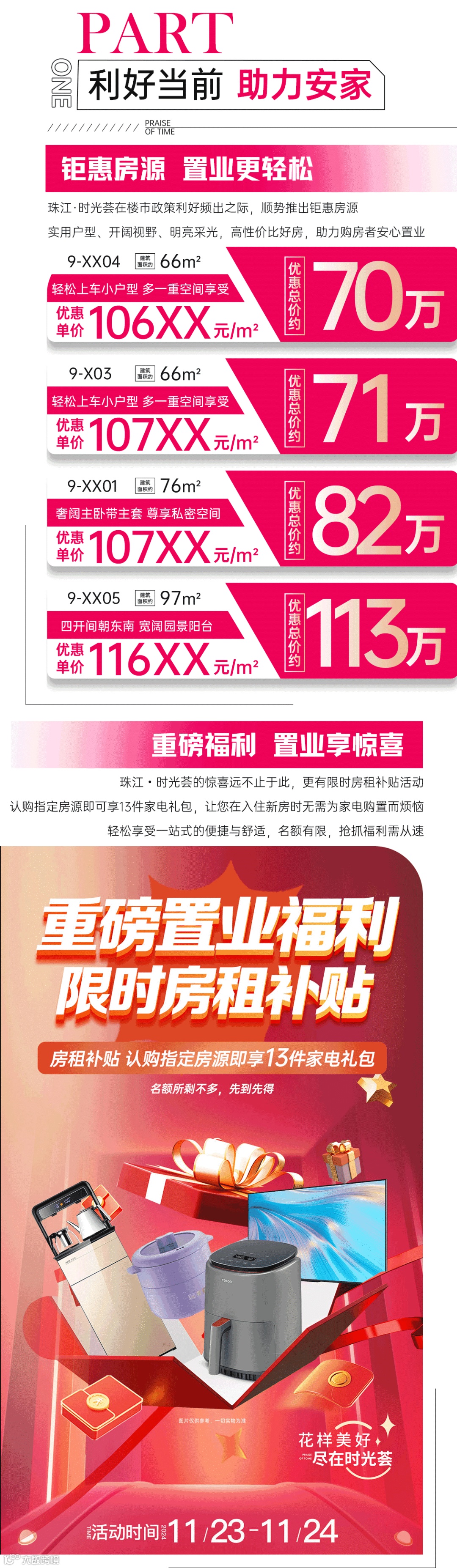 免责声明:1、本宣传资料仅为要约邀请 ,所有文字和图片仅供参考,不作为开发商的销售承诺及要约内容,买卖双方权利义务均以实际签订的商品房合同约定为准。2、本宣传资料对周边环境、政府规划、商业配套、教育资源、地铁、城轨、高速、投资前景等信息为截止于2024年11月的情况,有关介绍仅为提供相关信息,并不作为开发商的销售承诺和要约内容,前述信息可能因政府规划调整及开发商无法控制、预测原因而出现变化,以最新公布的政府文件及相关官方信息为准。3、部分图片来源网络,如有侵权,请联系删除。4、本活动宣传推广细则以各楼盘现场执行政策为准。画面中涉及折扣优惠等以各楼盘现场公示为准。到访/成交礼品数量有限,领完即止。开发商保留对宣传资料更新、修改的权利,敬请留意最新宣传资料。在法律允许范围内,开发商对宣传资料内容拥有解释权。5、本宣传资料对项目周边幼儿园、学校等教育配套资源的介绍旨在提供相关信息,并不意味着本公司对就学安排做出承诺。教育 资源的名称、办学性质、办学规模、学位位置、开学(班)时间、招 生条件、收费标准、及招生区域存在调整的可能,应以教育主管部门及办学方颁布的政策规定为准。6.本宣传资料解释权,在相关法律范围内归广州珠实地产有限公司及旗下项目开发商所有。宣传资料制作时间:2024年11月。