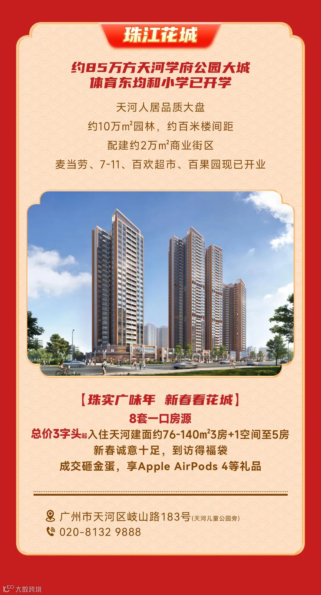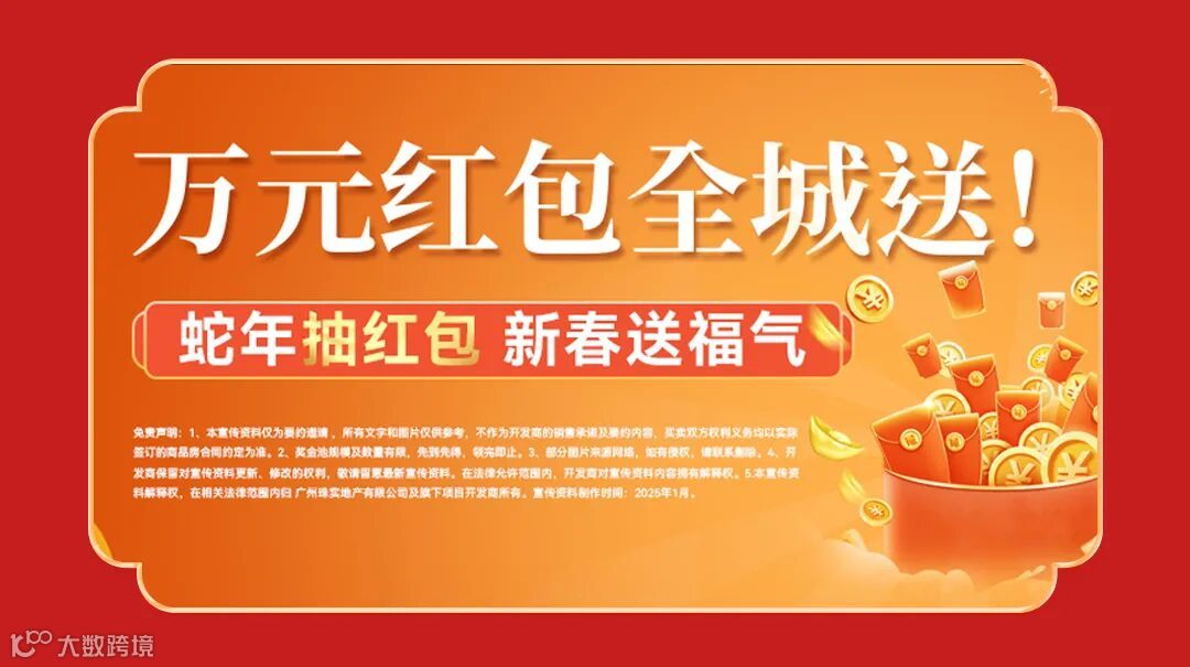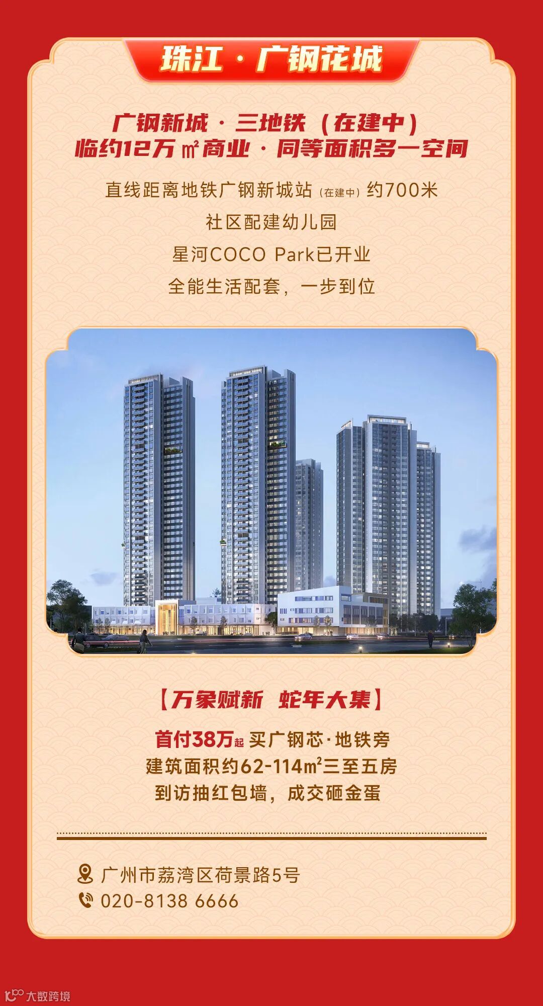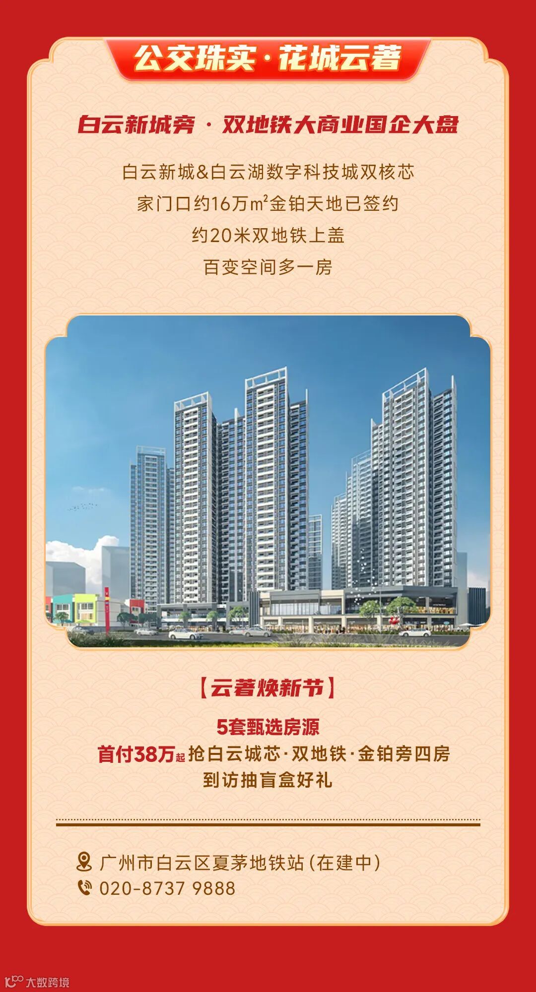 免责声明:1、本宣传资料仅为要约邀请 ,所有文字和图片仅供参考,不作为开发商的销售承诺及要约内容,买卖双方权利义务均以实际签订的商品房合同约定为准。2、本宣传资料对周边环境、政府规划、商业配套、教育资源、地铁、城轨、高速、投资前景等信息为截止于2025年1月的情况,有关介绍仅为提供相关信息,并不作为开发商的销售承诺和要约内容,前述信息可能因政府规划调整及开发商无法控制、预测原因而出现变化,以最新公布的政府文件及相关官方信息为准。3、本宣传资料对项目周边幼儿园、学校等教育配套资源的介绍旨在提供相关信息,并不意味着本公司对就学安排做出承诺。教育 资源的名称、办学性质、办学规模、学位位置、开学(班)时间、招 生条件、收费标准、及招生区域存在调整的可能,应以教育主管部门及办学方颁布的政策规定为准。4、部分图片来源网络,如有侵权,请联系删除。5、本活动宣传推广细则以各楼盘现场执行政策为准。画面中涉及折扣优惠等以各楼盘现场公示为准。全民营销具体政策/期限/提取方式等以各楼盘现场执行政策为准。到访/成交礼品/活动礼品领取以各楼盘现场实物及政策为准,数量有限,领完即止。奖金池规模及数量有限,先到先得,领完即止。开发商保留对宣传资料更新、修改的权利,敬请留意最新宣传资料。6.本宣传资料解释权,在相关法律范围内归广州珠实地产有限公司及旗下项目开发商所有。宣传资料制作时间:2025年1月。