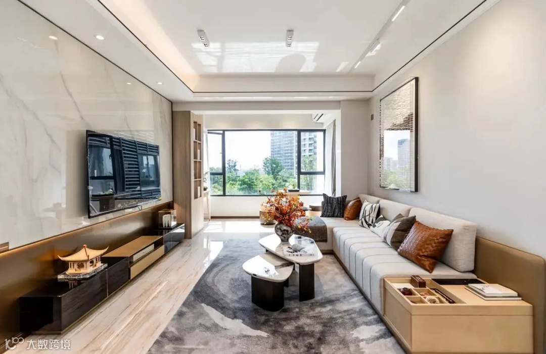 一体化会客厅,外连大尺度阳台,形成一个奢阔礼仪空间,提升采光的同时,拓展更多的生活意趣,三大舒适次卧自带全景飘窗,是留给孩子与父母的阳光天地。