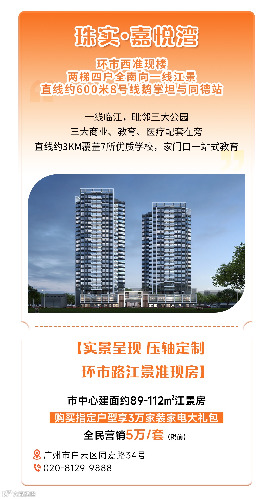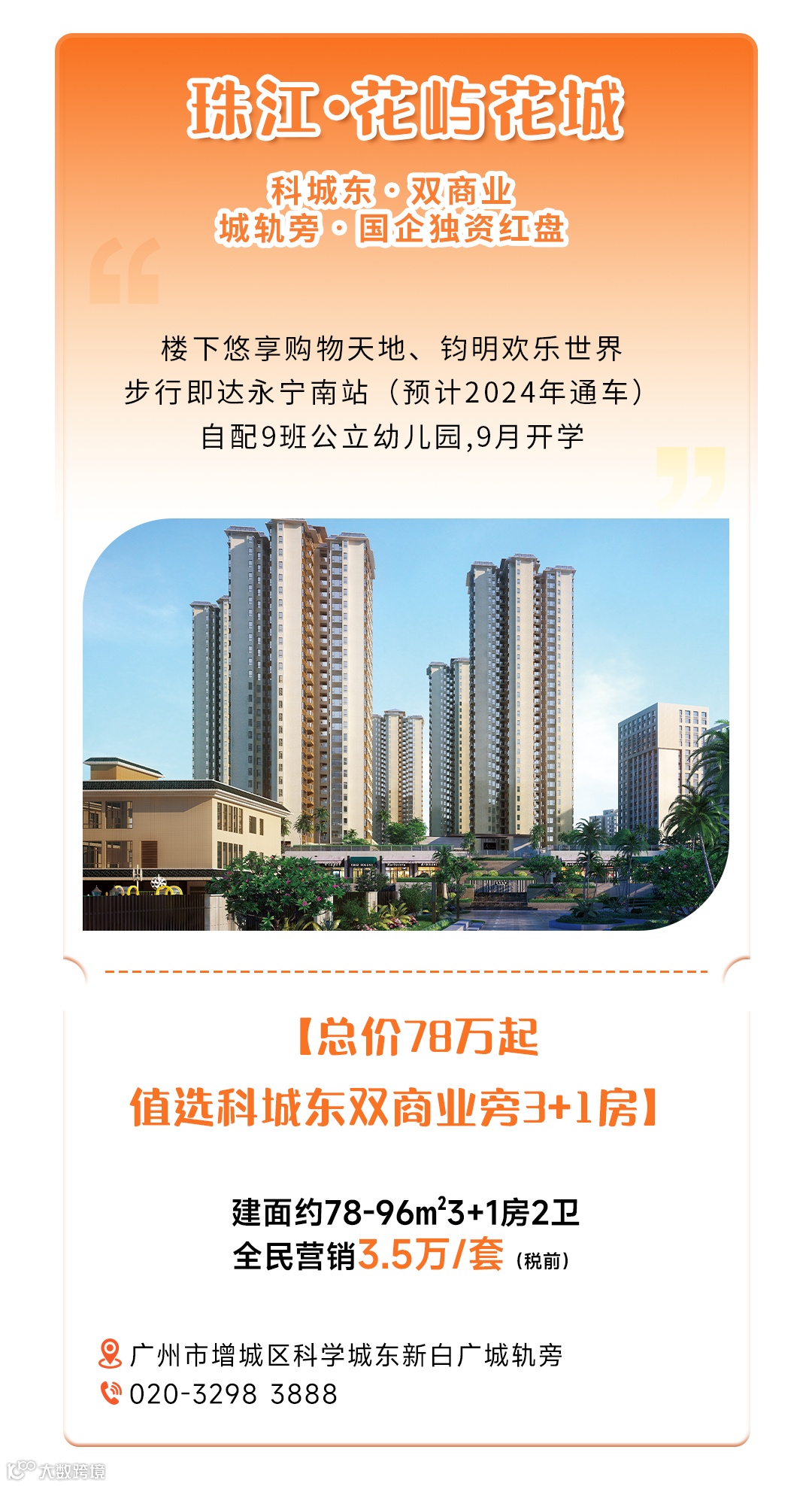 免责声明:1、本宣传资料仅为要约邀请 ,所有文字和图片仅供参考,不作为开发商的销售承诺及要约内容,买卖双方权利义务均以实际签订的商品房合同约定为准。2、本宣传资料对周边环境、政府规划、商业配套、教育资源、地铁、城轨、高速、投资前景等信息为截止于2024年09月的情况,有关介绍仅为提供相关信息,并不作为开发商的销售承诺和要约内容,前述信息可能因政府规划调整及开发商无法控制、预测原因而出现变化,以最新公布的政府文件及相关官方信息为准。3、部分图片来源网络,如有侵权,请联系删除。4、本活动宣传推广细则以各楼盘现场执行政策为准。画面中涉及折扣优惠等以各楼盘现场公示为准。到访/成交礼品数量有限,领完即止。开发商保留对宣传资料更新、修改的权利,敬请留意最新宣传资料。在法律允许范围内,开发商对宣传资料内容拥有解释权。5、本宣传资料对项目周边幼儿园、学校等教育配套资源的介绍旨在提供相关信息,并不意味着本公司对就学安排做出承诺。教育 资源的名称、办学性质、办学规模、学位位置、开学(班)时间、招 生条件、收费标准、及招生区域存在调整的可能,应以教育主管部门及办学方颁布的政策规定为准。6.本宣传资料解释权,在相关法律范围内归广州珠实地产有限公司及旗下项目开发商所有。宣传资料制作时间:2024年9月。