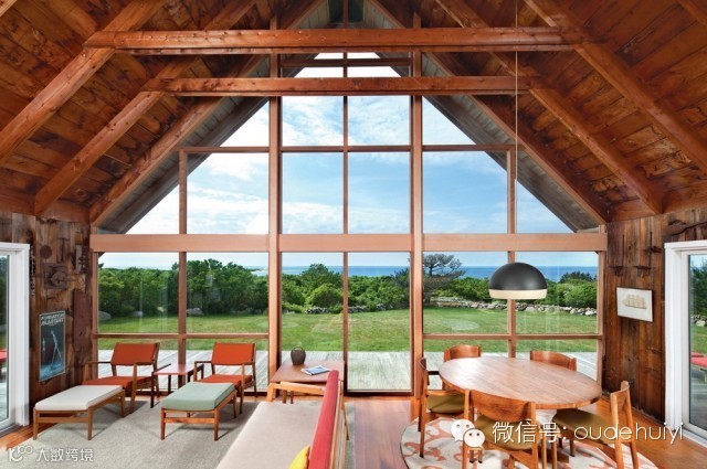 出生在丹麦的美国木结构建筑师Jens Risom如今已有94岁高龄,Risom不仅设计木结构建筑更包括里面的家具与室内设计。这座位于罗德岛(美国东北海岸的州)近海岸处的“A”字形住宅是Jens Risom为自己建造的退休后的家园。北面通透的大玻璃山墙可一览周边的田园风光。内部虽不奢华,但质朴的材料与其亲自设计的家具让这里成为温馨的生活港湾,相信也是每个人追求的“家”的所在。