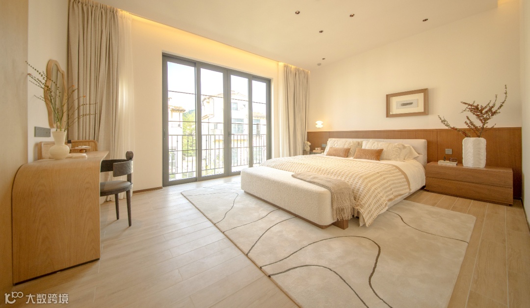 二层主卧套房通透大气,卧室阔景阳台将生活的采光与通透做到尽致。舒阔通透的空间格局仿佛用光融化了室内外的界限,让居者可自在地徜徉于自然的温柔里。
