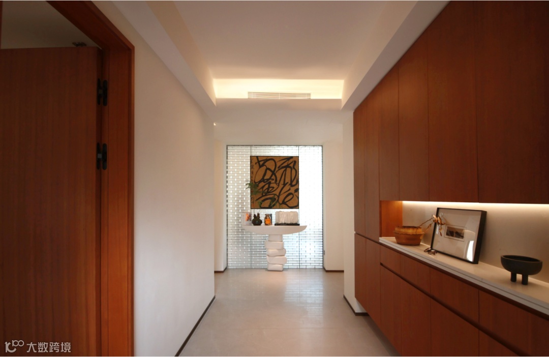 负一层以会客为主,温润内敛的浅米咖基调削弱空间的表达欲,以素雅营造明净,藏锋于细节,张力渐生。