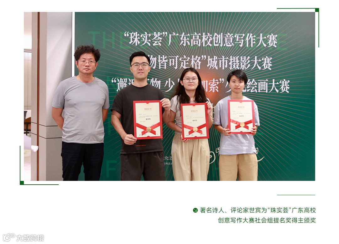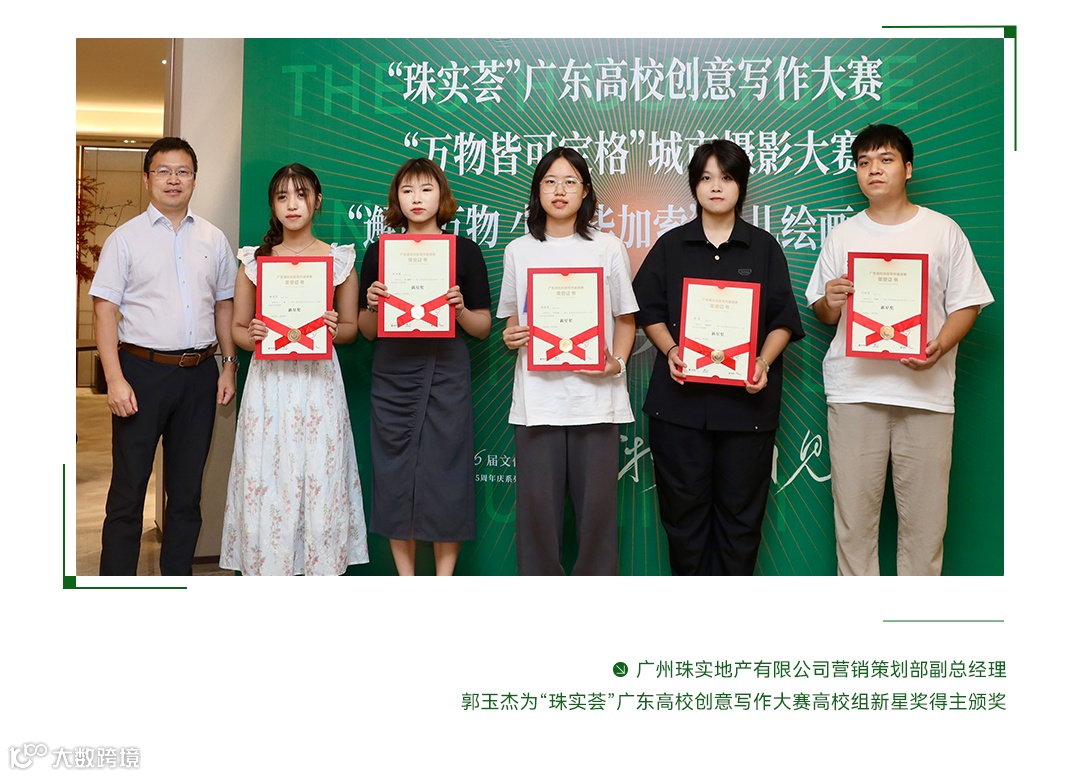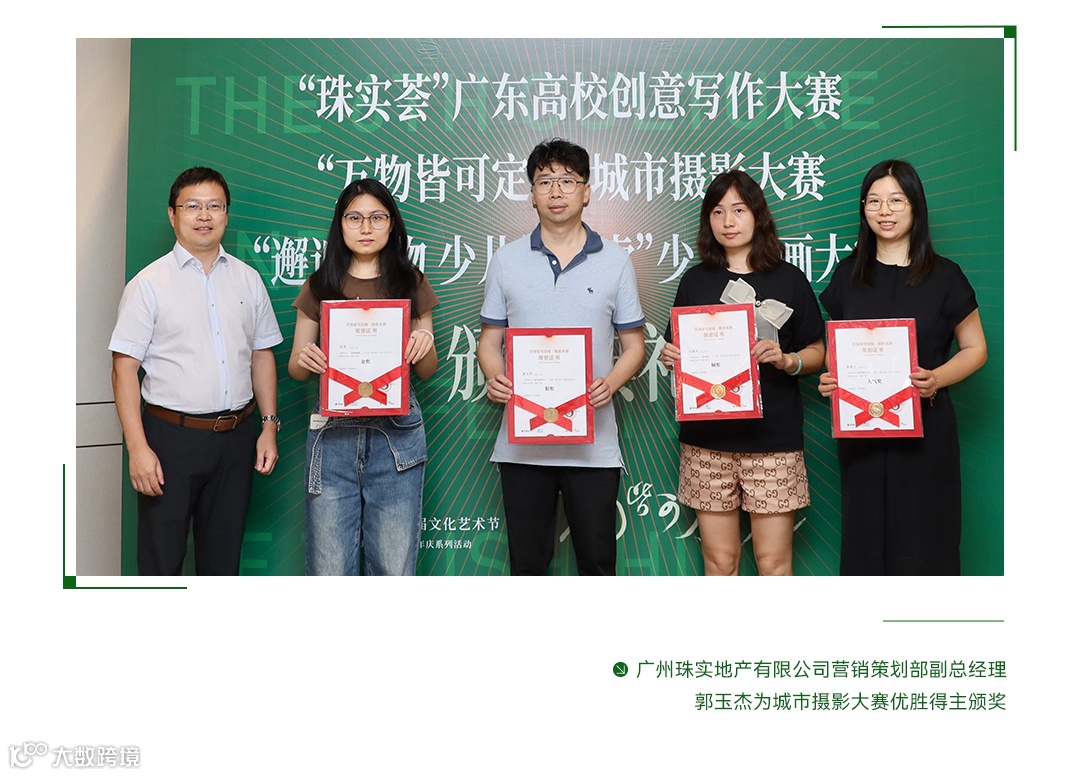 各板块优胜得主脱颖而出。珠实荟广东高校创意写作大赛、城市摄影大赛、少儿绘画大赛颁奖典礼在珠实·西关都荟举办。极富活力的文艺创作者聚在一起,感受人人出彩的文艺盛宴。