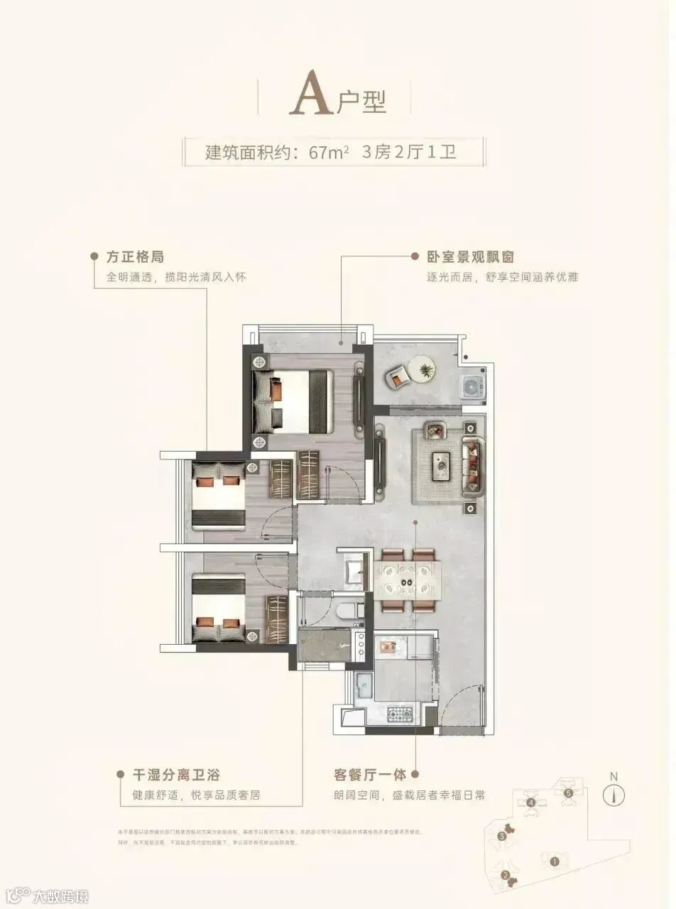 建筑面积约67-114㎡三至五房