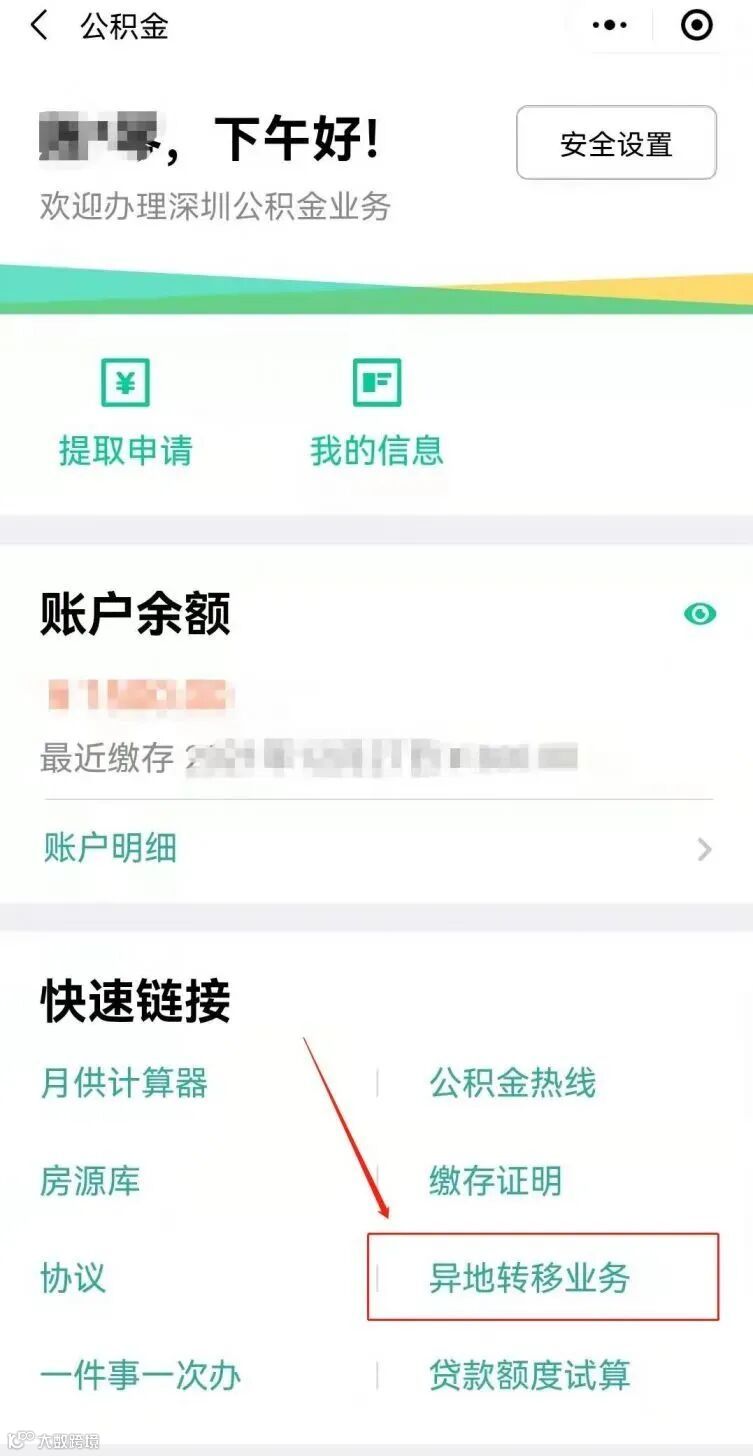 第二步,在小程序首页找到【公积金】服务,点击进入后选择下方的【异地转移业务】发起公积金转移申请(注意,公积金异地转入需近期连续缴存满6个月才可申请)。