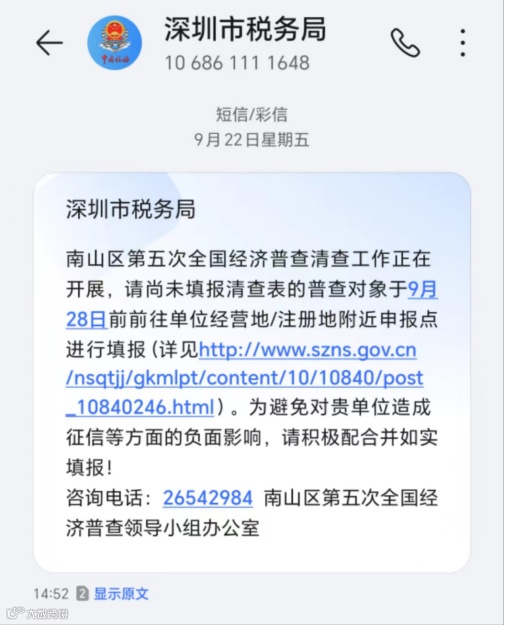 近日,很多老板们都收到了关于经济普查的短信!请勿忽视,需要积极配合处理!