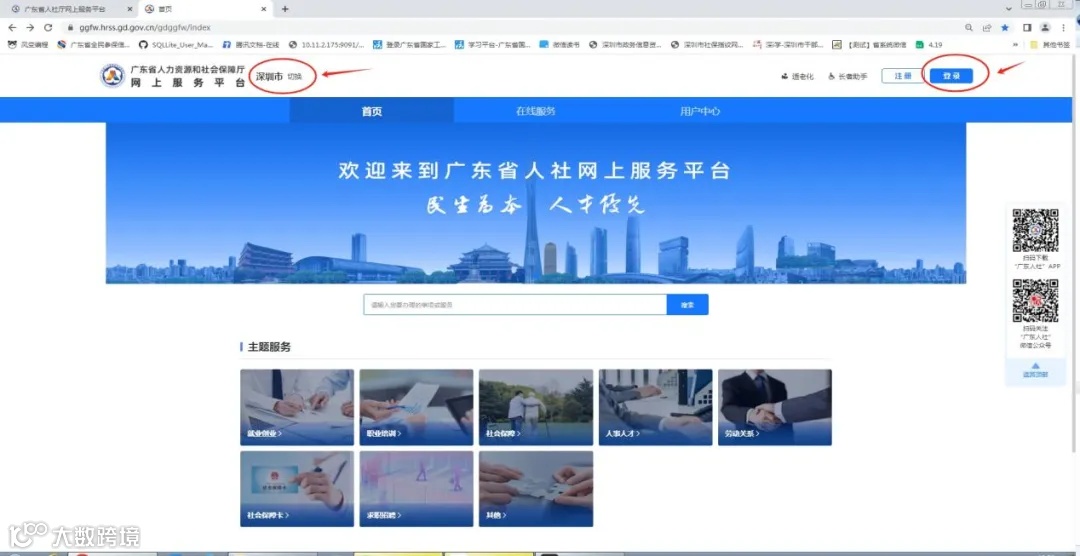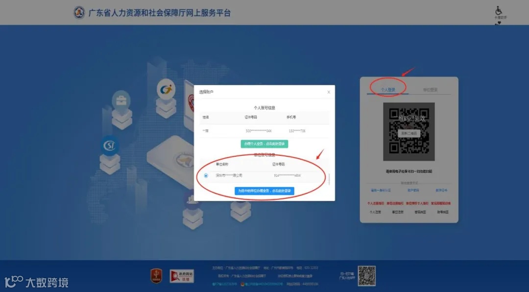打开广东省人力资源和社会保障厅网上服务平台官网,选择切换地市为深圳,点击“个人登录”,选择已授权的单位账号(个人注册登录详见操作指引)。(https://hrss.sz.gov.cn/szsi/sbjxxgk/sits/content/post_11721743.html)