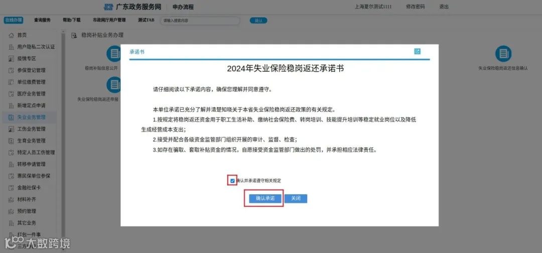 阅读承诺书,勾选“确认并承诺遵守相关规定”,点击“确认承诺”。