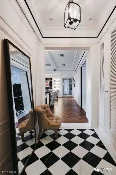 玄关处设置了一面全身镜,方便主人出门进门时整顿自己的仪表妆容,也让空间有了扩充感。