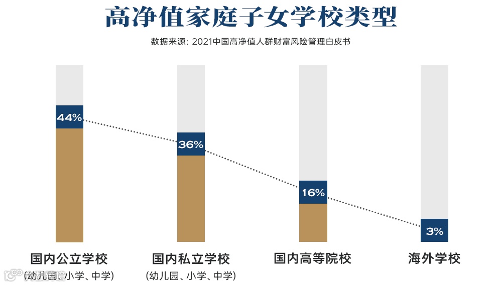 报告提及到,高净值家庭更看重子女教育,对于子女境内外教育需求占比高达65%。