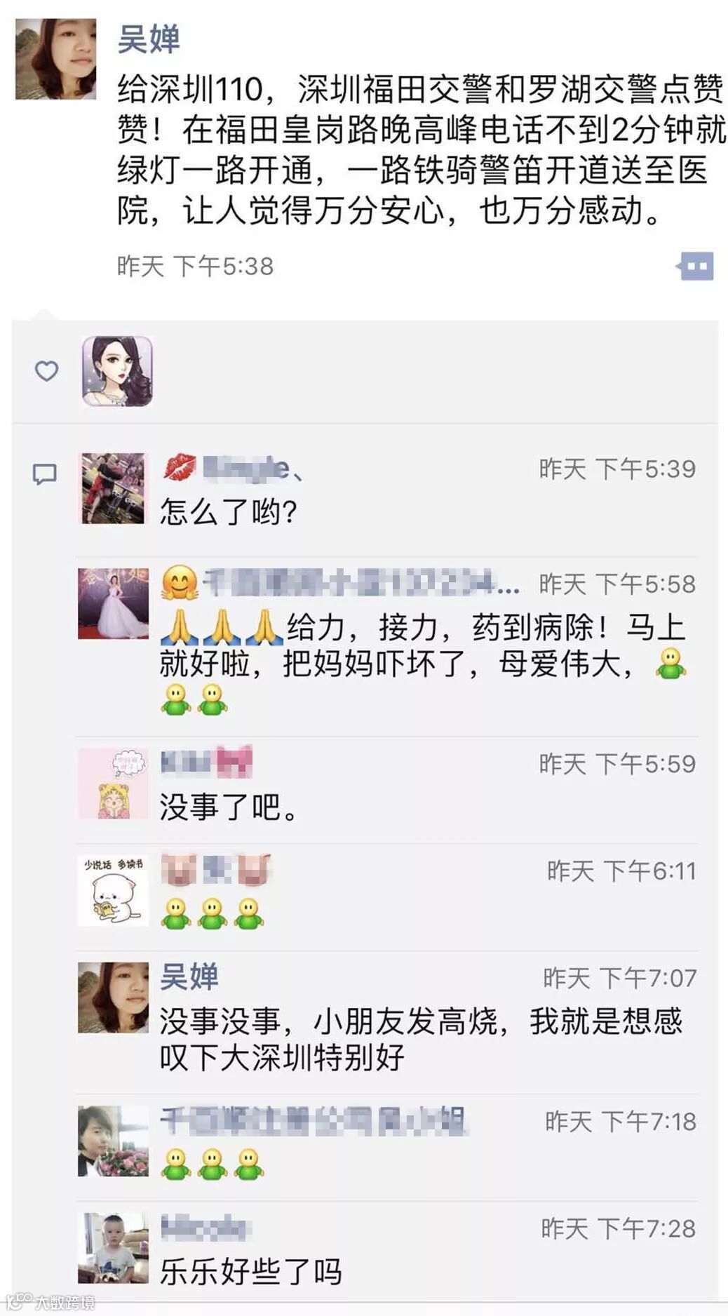 万幸,得到及时抢救的小家伙现在已经无恙。吴小姐说:在她们无助的时候,遇到了司机赵师傅(车牌号:粤BD81059)和交警同志,感恩,感动!!!到了关键时刻,才知道‘人民警察为人民’这话对咱老百姓的意义。!”
