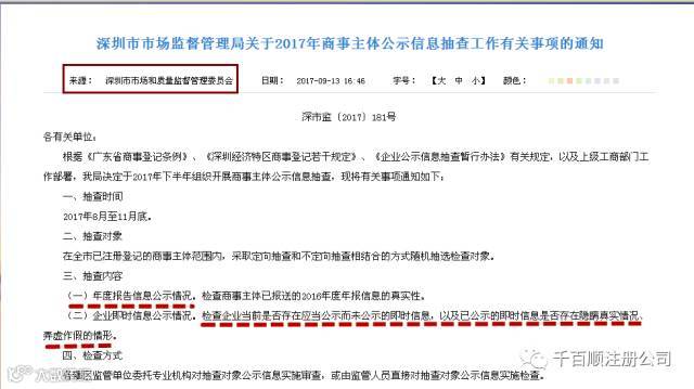 深圳市市场监督管理局会委托第三方会计师事务所对已申报工商年报企业进行抽查,针对申报信息错误或信息虚假企业,需配合提供所属年度会计报表、会计科目余额表、资产负债表、税审报告、审计报告等等文件