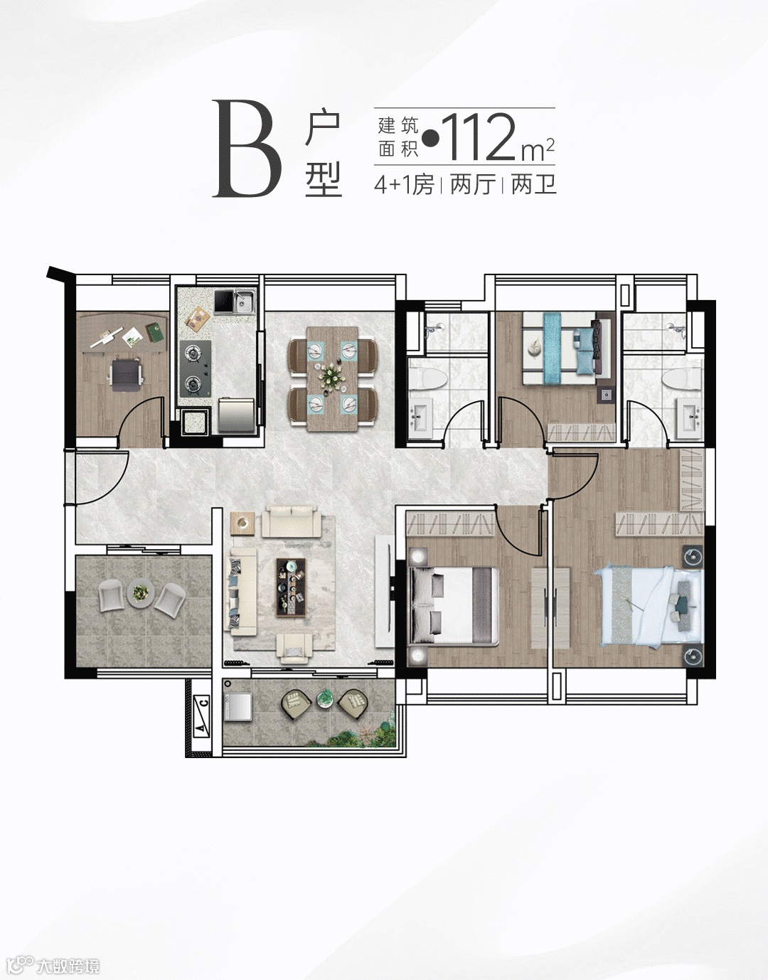 #选择户型:112㎡南北通透4+1房