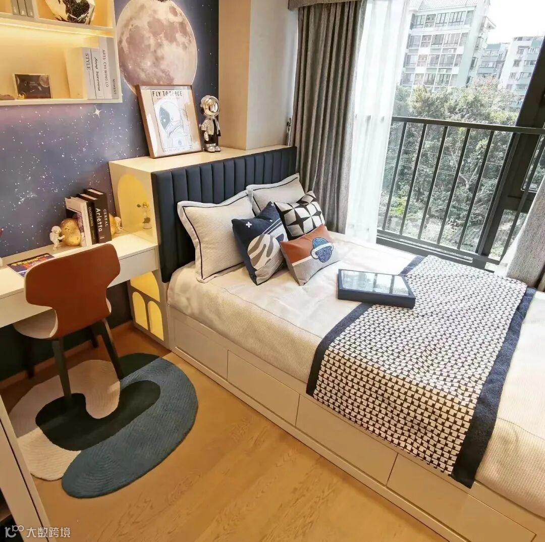 约89㎡户型给予了卢先生孩子更多空间,贴心打造梦幻儿童房,可以看书画画、游戏学习,安放孩子旺盛的精力与好奇心。