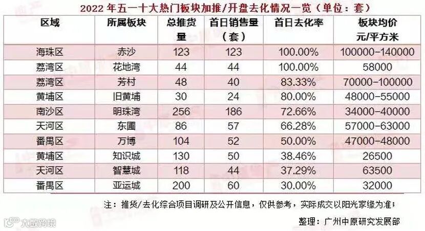 如此看来,不管是购房者,还是房企,对主城热门板块、地段配套的热爱都是无法掩饰的。据中原数据,今年广州五一去化前10的板块较为受客户青睐,要么是老城区寸土寸金的地方,要么是各区重点发展的板块。