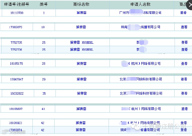 杭州某知名网络公司目前申请了“猴赛雷”这个名称的文字商标。