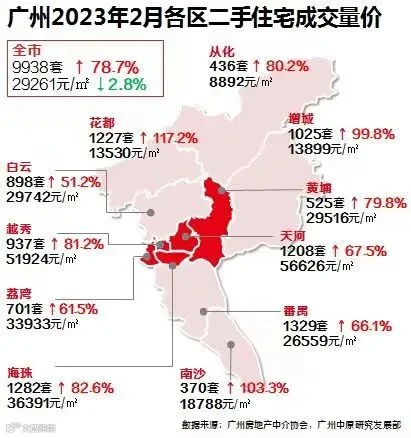 年后,二手房交易市场热度飙升,广州业主开启了疯狂放盘模式,目前链家二手房挂牌量已突破13万套,2月全市二手房交易量高达9938套,同比暴涨78.7%。其中天河成交达1208套,同比增长67.5%。