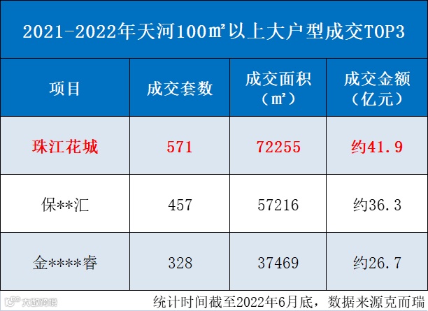 项目自开售以来,一直赢得市场的广泛认可。2021年-2022年6月,珠江花城占据天河100㎡以上大户型成交套数、面积、金额三冠王席位。