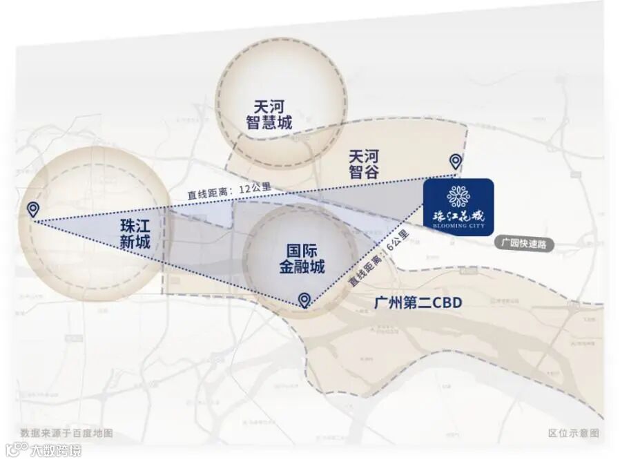 珠江花城与执信中心天河位置实景图