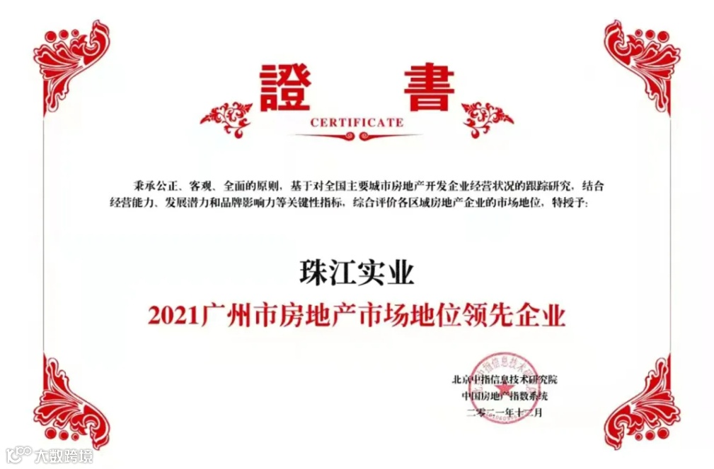 面对2021年严峻的行业环境,珠江实业地产苦练内功、迎难而上,在售项目业绩逆势增长,综合产品、品牌及服务等各项优异指标,跻身广州市房地产市场地位领先企业前4名,较2020年进一步向上跃进。