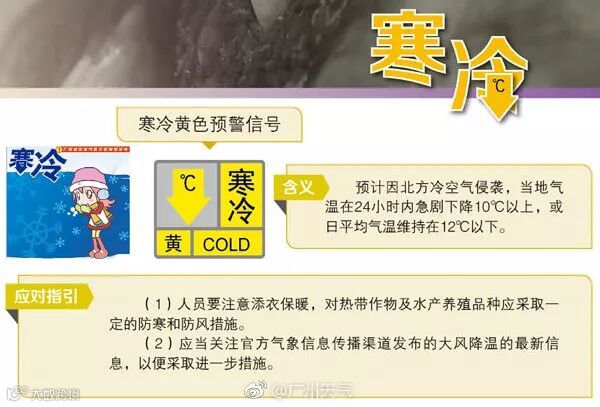 寒冷黄色预警信号