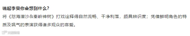 以“谋女郎”身份出道的李曼从去年《天乩之白蛇传说》中可爱灵动的小青,到现在热播剧《怒海潜沙&秦岭神树》中的冷艳御姐阿宁,李曼用跨度极大的两个角色为观众展现着自己的多变。