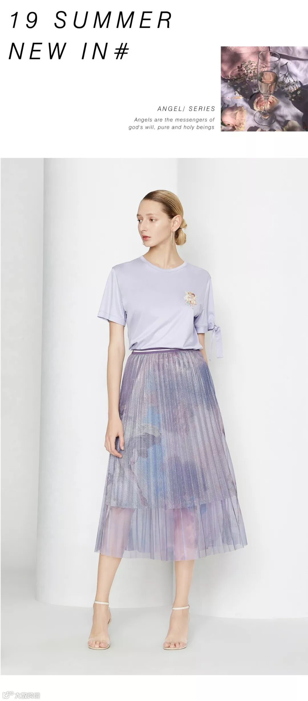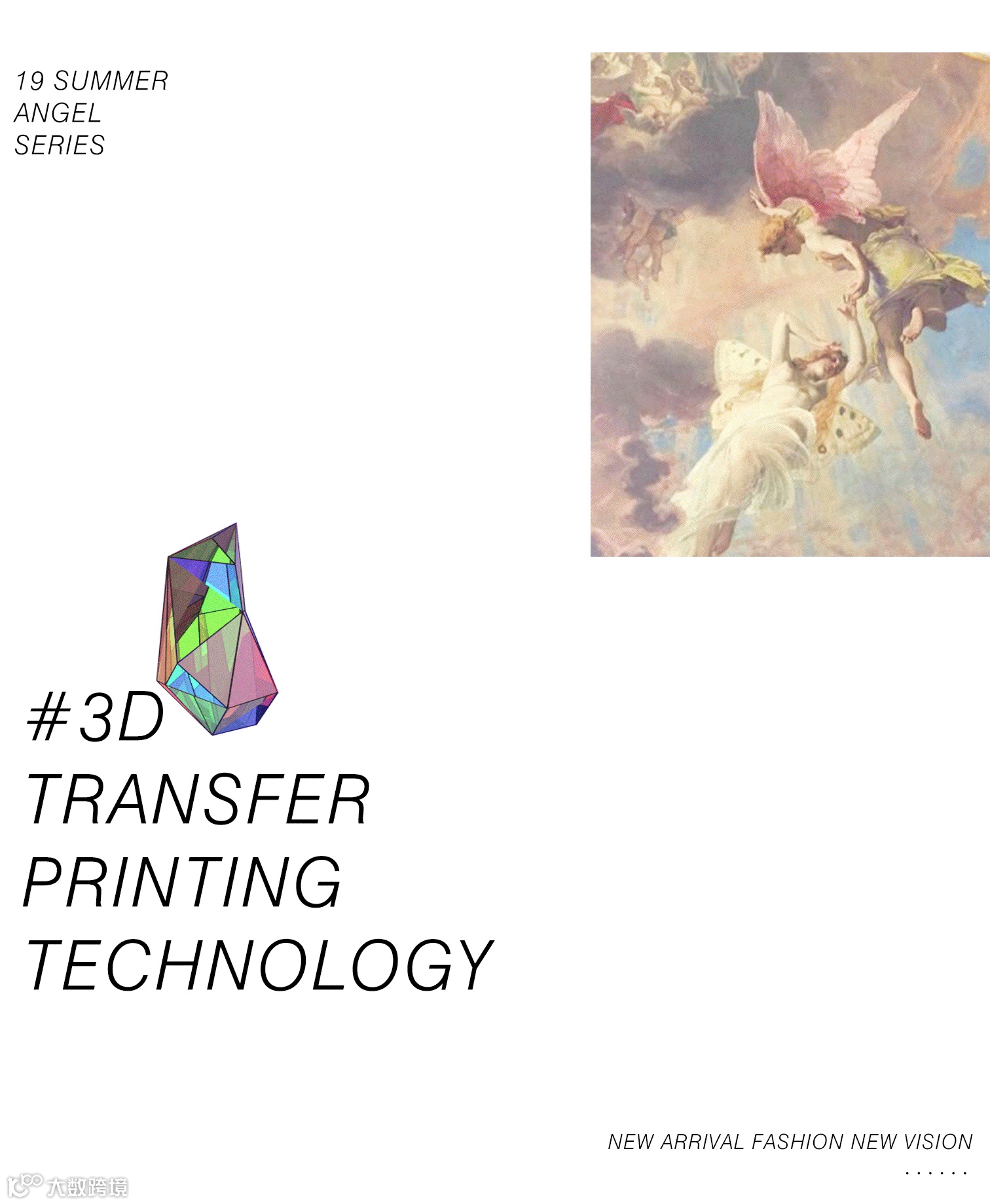 几个世纪以来,天使也一直是艺术家青睐的主题,从宗教兴起到文艺复兴,天使是上帝旨意的传递者,纯洁而又神圣的生灵。此次设计师将天使运用于服装上,首次采用3D转印技术,颇为展现文艺复兴时期的浪漫艺术气息。