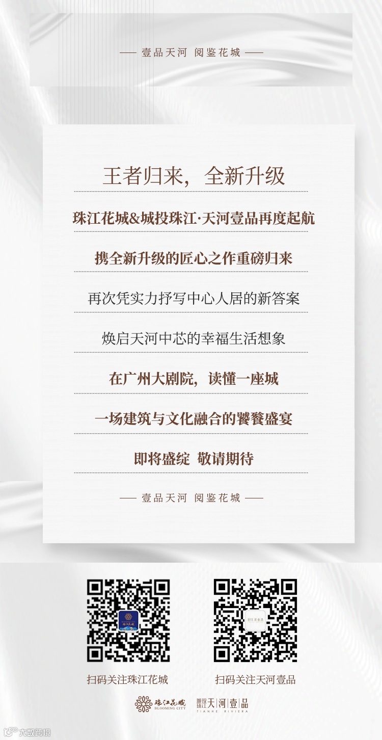 【免责声明】1、因编辑需要,文字和图片之间亦无必然联系,仅供读者参考;2、本平台致力分享有价值的内容,转载引用仅为传播更多信息之目的,所转载的所有文章、图片、音频、视频文件等资料版权归版权所有人所有,因非原创文章及图片等内容无法逐一和版权者联系,亦无法核实真实出处,如涉及侵权请联系我们删除,谢谢;3、文章中部分图片、视频文件等来源于网络,如若存在引用不当或版权争议等问题,请及时联系“城投珠江·天河壹品”后台进行删除,资料不构成要约或开发商承诺等,一切以最终签署的协议书、合同为准;4、本平台所载的信息截止于本文推送时的情况,前述信息可能因政府规划调整及开发商无法控制、预测原因而出现变化,以政府部门最新公布的规划文件及相关信息为准;5、本项目推广名为【城投珠江·天河壹品】。本宣传资料仅为要约邀请,所有文字、数据、图片等仅供参考,不作为约内容及销售承诺。双方权利义务均以商品房买卖合同约定为准。