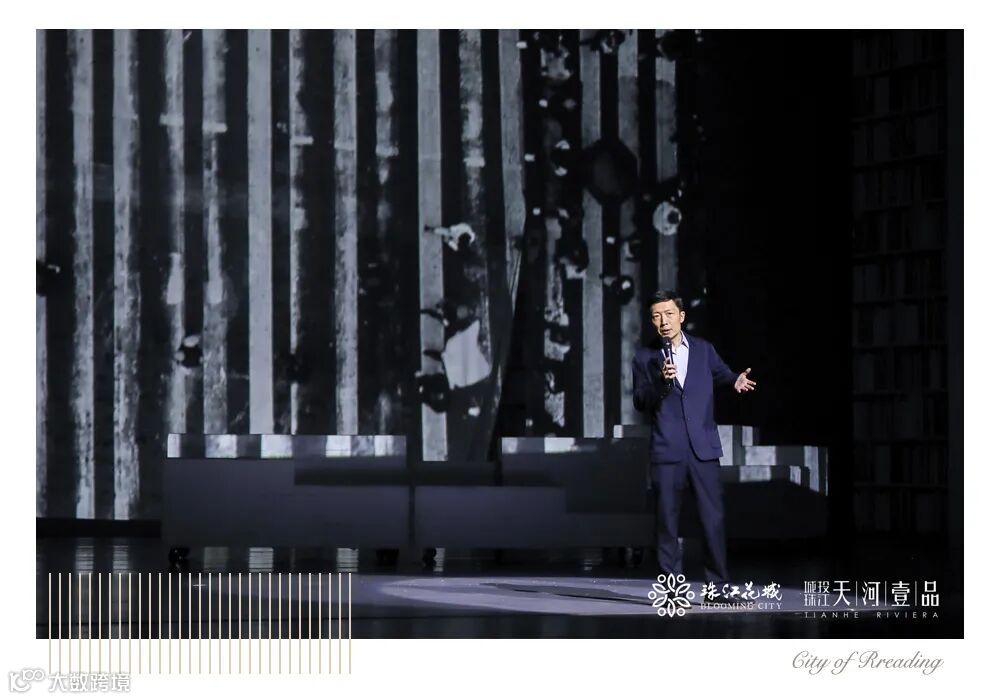 该盛典由著名诗人、广州城市形象国际传播大使黄礼孩总策划,广州话剧艺术中心国家级导演倪超担当总导演,以“地产+文学”的生动跨界发布形式,见证了天河双盘的全新升级绽放。活动现场,珠江实业集团与广州城投集团相关领导与一众艺文名人齐聚,品鉴阅读带来的旷世之美,共探精品人居趋势与未来。
