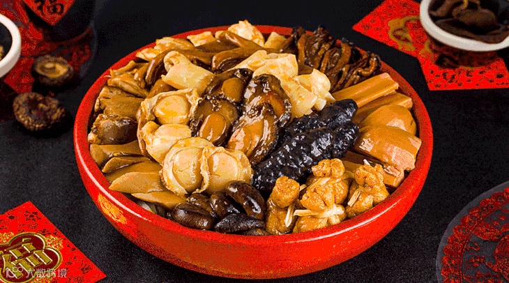 这么多名贵食材,还有满满一盆的好兆头,实在是太符合
