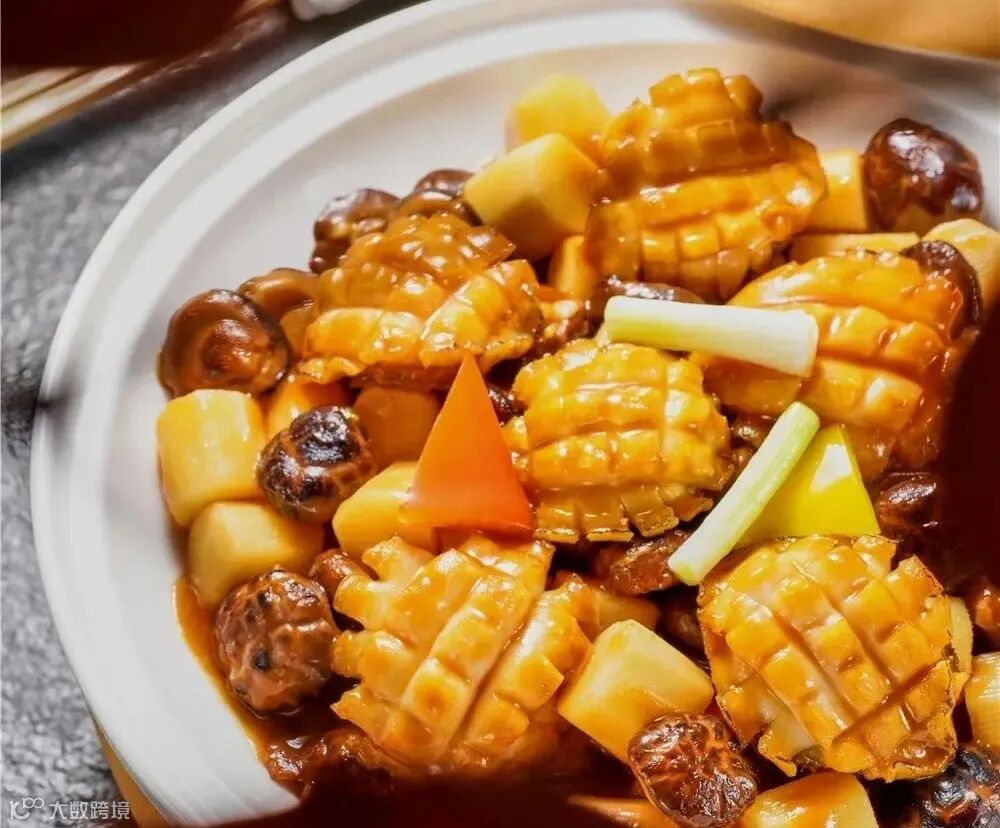 俗话说“一口鲍鱼一口金”,在十多种配料的鲍汁里煨煮的