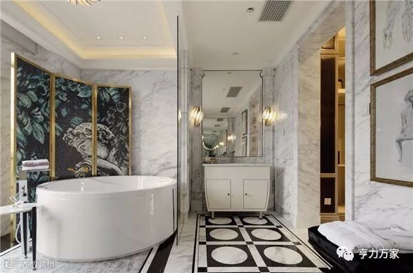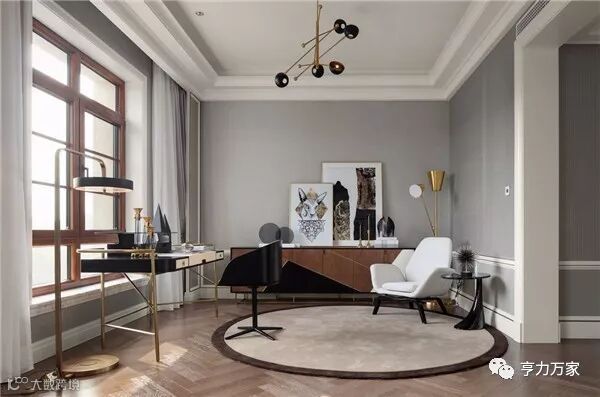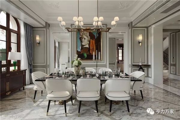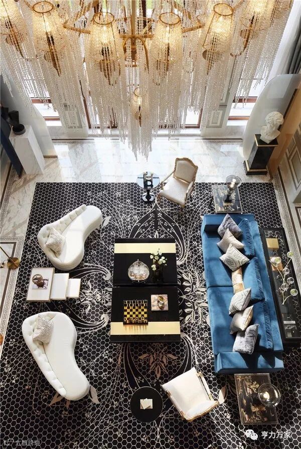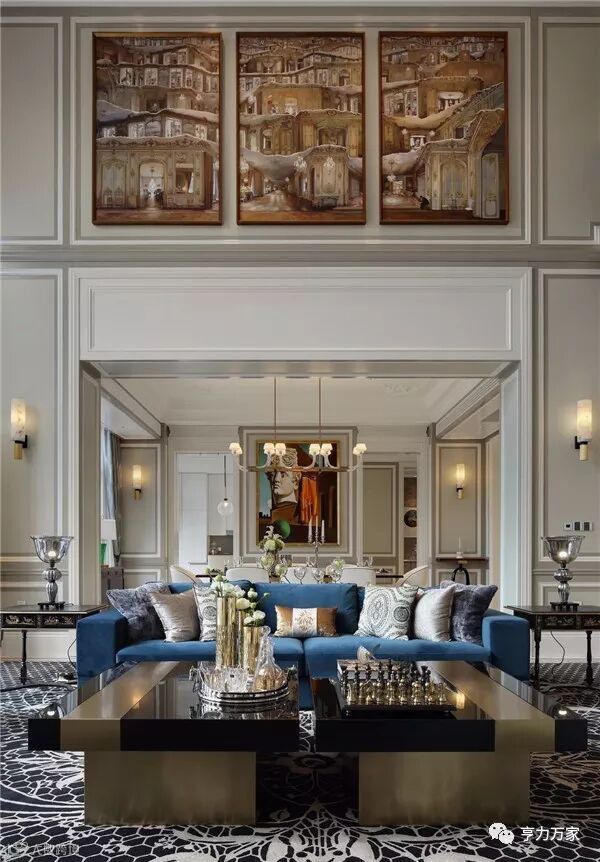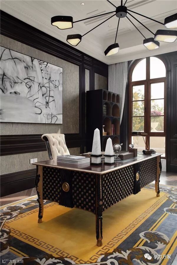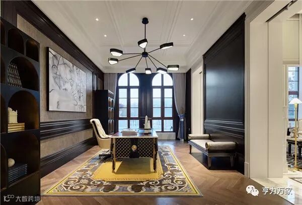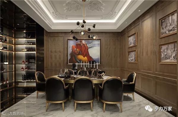 文艺复兴时代流行金色为高贵之色。设计中无处不在的金属线条不断变化,镶嵌着华美的高雅;墙面上的画作,重现文艺复兴时代的荣光。此时此处,令人联想到赞美的诗歌——建筑的古典形制严谨而有节奏,就像组成音乐的精妙五线和弦,奏响唤醒晨间日出的提琴乐曲。
