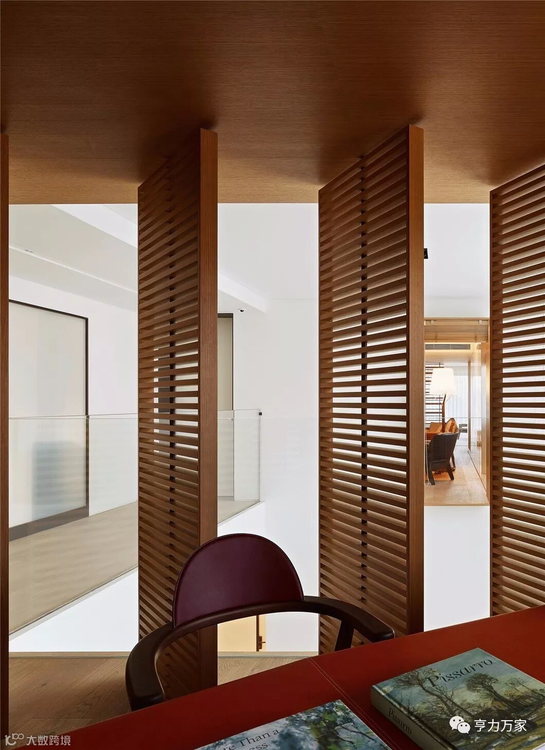 精巧的书房一展主人才情,外可眺望院落,对景则遥相呼应主卧室起居室,在白色空间中植入温暖的木作空间,具有极强的包容感和兼容性。
