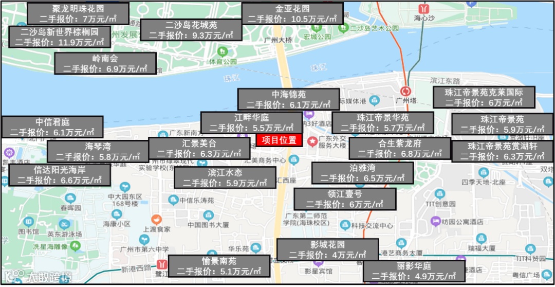 北上是二沙岛豪宅区和珠江新城CBD。